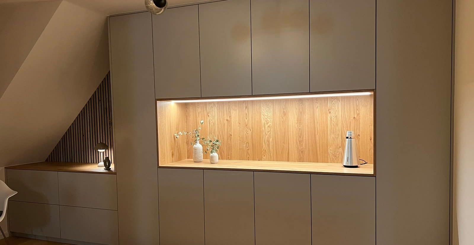 Für das Auge nicht wahrnehmbaren Stauraum schaffen Sie mit modernen Design-Lösungen, der Ihre Wohn- und Büroräume auf elegante Weise aufgeräumt hält. Mit langjähriger Expertise, Millimetergenauigkeit sowie einer großen Auswahl an individuell gestaltbaren Oberflächen schaffen wir von Maß & Moritz effiziente und qualitativ hochwertige Stauraum-Lösungen für Ihr Zuhause. Von der Nutzung kleiner Nischen über Raumteiler in Schlafzimmern bis hin zu kreativen multifunktionalen Möbelstücken – lassen sie sich von uns inspirieren!