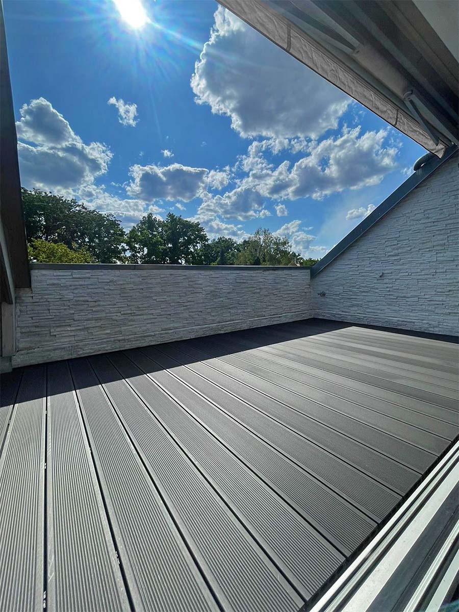 Möchten eine atemberaubende Dachterrasse mit Panoramablick bauen oder suchen Sie nach hochwertigen Terrassendielen für einen gemütlichen Balkon? Unser Team von Fachleuten steht bereit, um Ihre Vision Wirklichkeit werden zu lassen. Mit uns wird jede Terrasse auf Wunsch zu einem Ort der Entspannung und Begegnung.