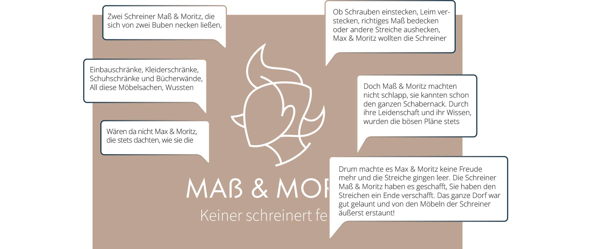 Zwei Schreiner Maß & Moritz, die sich von zwei Buben necken ließen, Welche Max & Moritz hießen.